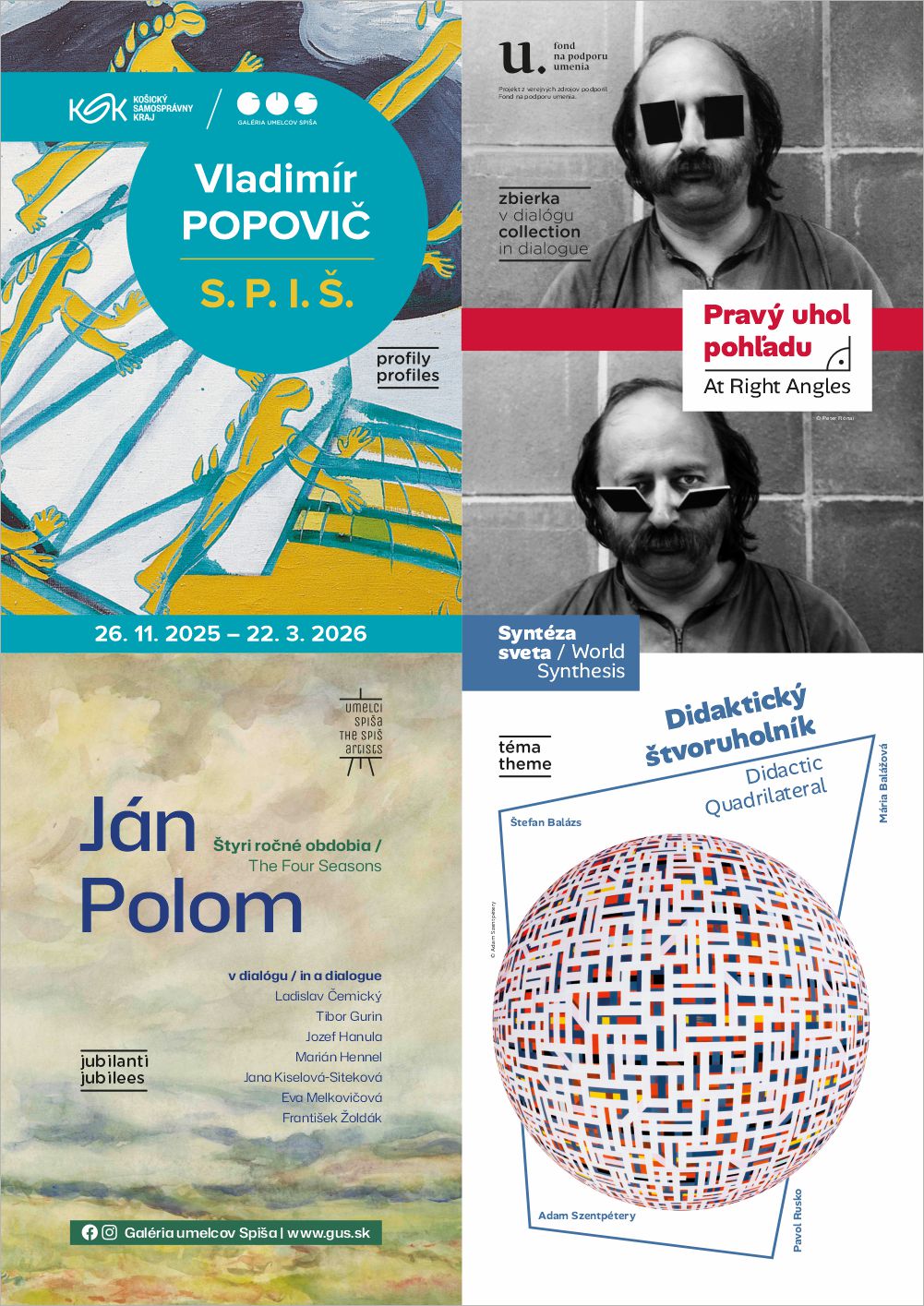 Vo výstavnom balíku sa nachádzajú štyri aktuálne výstavné projekty: Vladimír Popovič: S. P. I. Š, Syntéza sveta: Pravý uhol pohľadu, Syntéza sveta: didaktický štvoruholník, Ján Polom: Štyri ročné obdobia a dve stále expozície ‒ Jozef HanulaTerra Gothica.