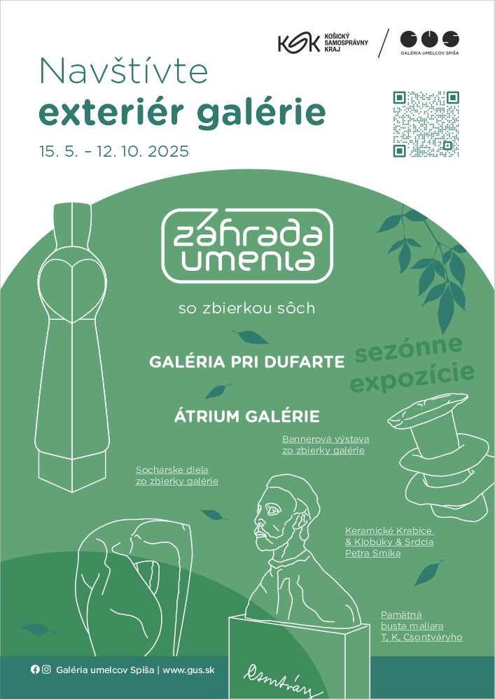 Vo výstavnom balíku galérie sa nachádzajú tri aktuálne výstavy Nové otázky, 3 (prí)behy ženy a Michaela Šuranská & Kristína Mičová: Myslíš, že slnko je žlté? Dve stále expozície v interiéri ‒ Jozef Hanula a Terra Gothica dopĺňajú exteriérové projekty Záhrada umenia, Pomník Csontváryho, Zo zbierky galérie a Peter Smik: Krabice & Klobúky & Srdcia, pre verejnosť sprístupnené už len do 12. 10.!