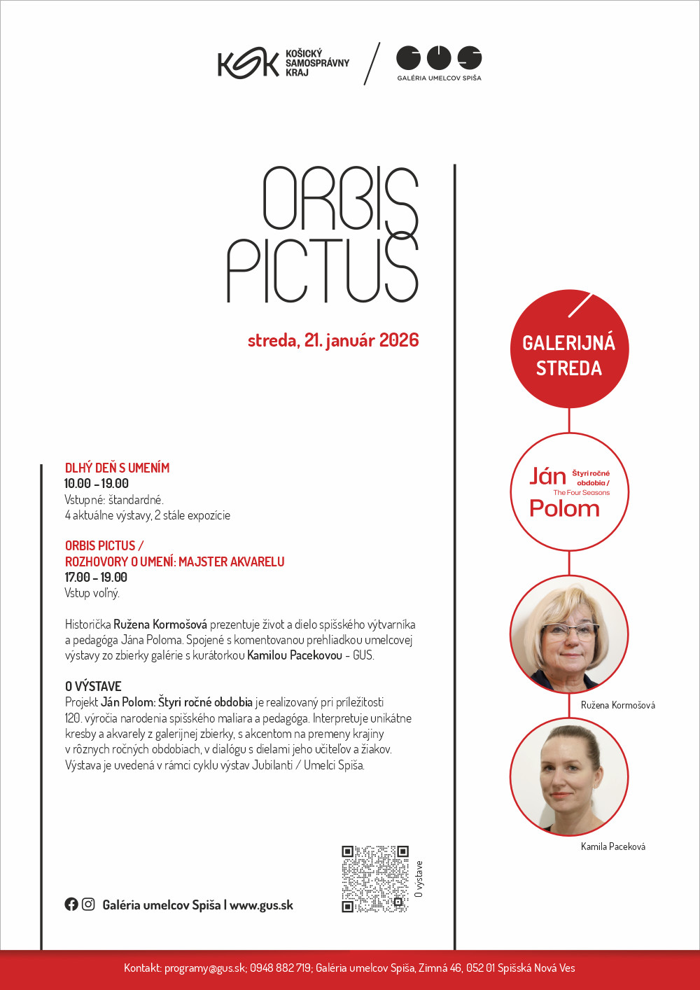 Historička Ružena Kormošová prezentuje život a dielo spišského výtvarníka a pedagóga Jána Poloma. Spojené s komentovanou prehliadkou umelcovej výstavy zo zbierky galérie s kurátorkou Kamilou Pacekovou – GUS. Vstup: voľný.