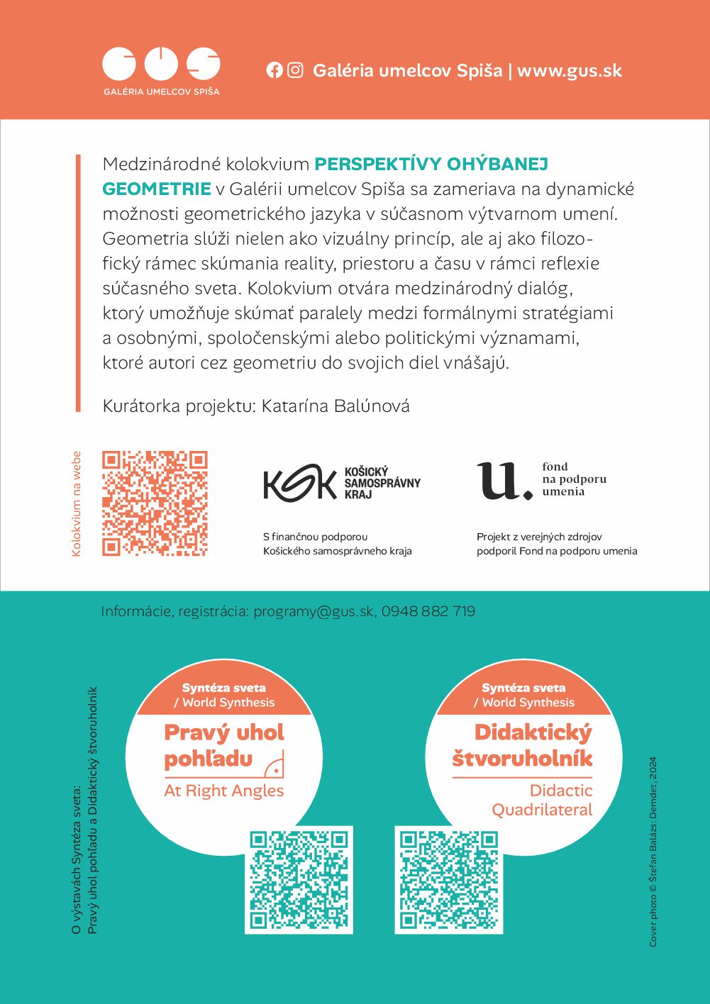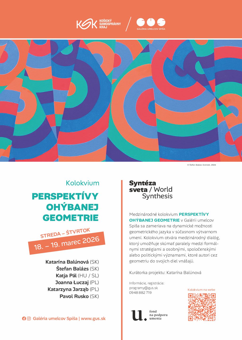 Medzinárodné odborné kolokvium Perspektívy ohýbanej geometrie v Galérii umelcov Spiša sa zameriava na dynamické možnosti geometrického jazyka v súčasnom výtvarnom umení. Geometria slúži nielen ako vizuálny princíp, ale aj ako filozofický rámec skúmania reality, priestoru a času v rámci reflexie súčasného sveta. Kolokvium otvára medzinárodný dialóg, ktorý umožňuje skúmať paralely medzi formálnymi stratégiami a osobnými, spoločenskými alebo politickými významami, ktoré autori cez geometriu do svojich diel vnášajú.
