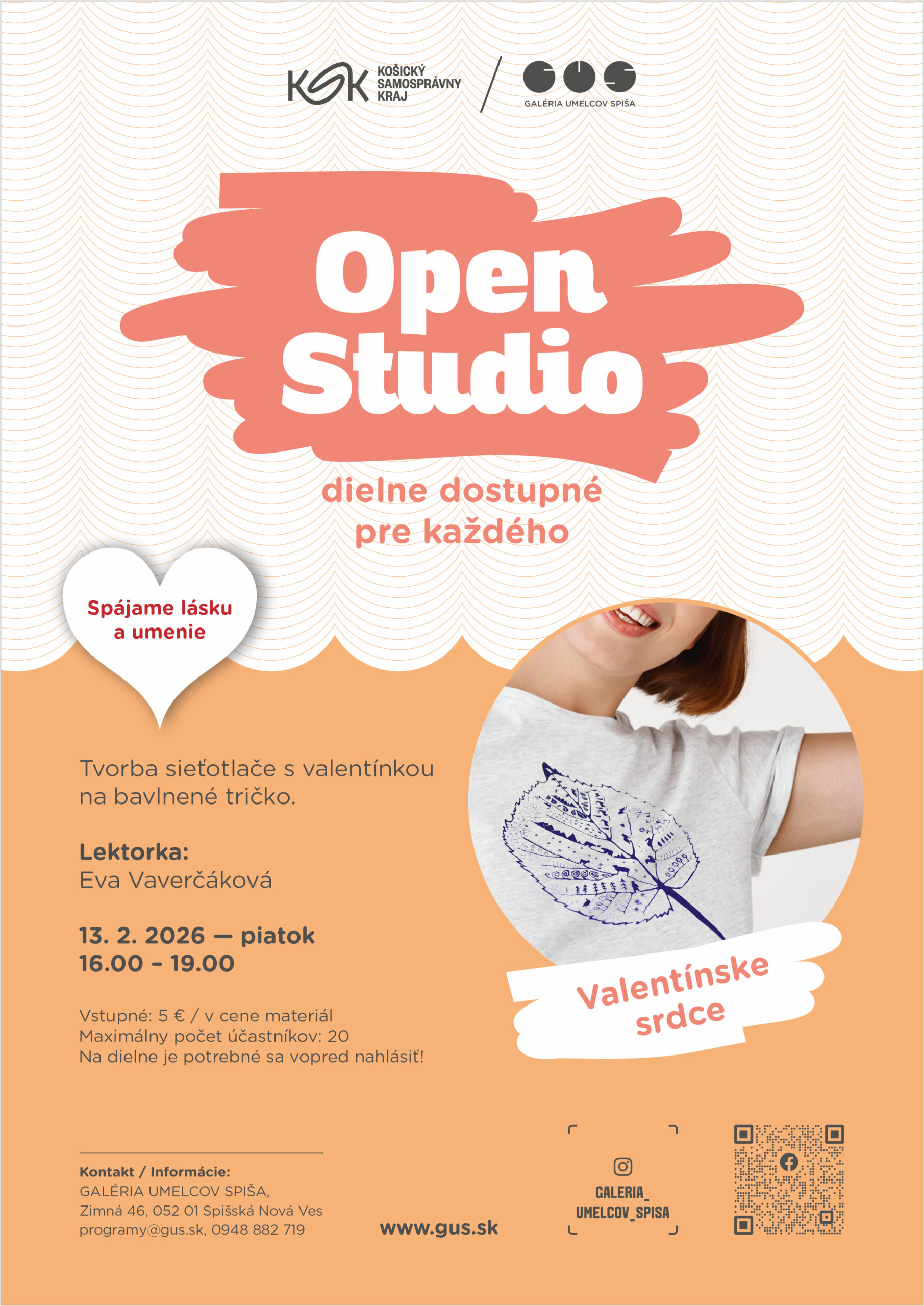 Tvorba sieťotlače s valentínkou na bavlnené tričko. Vstupné: 5 € / osoba.