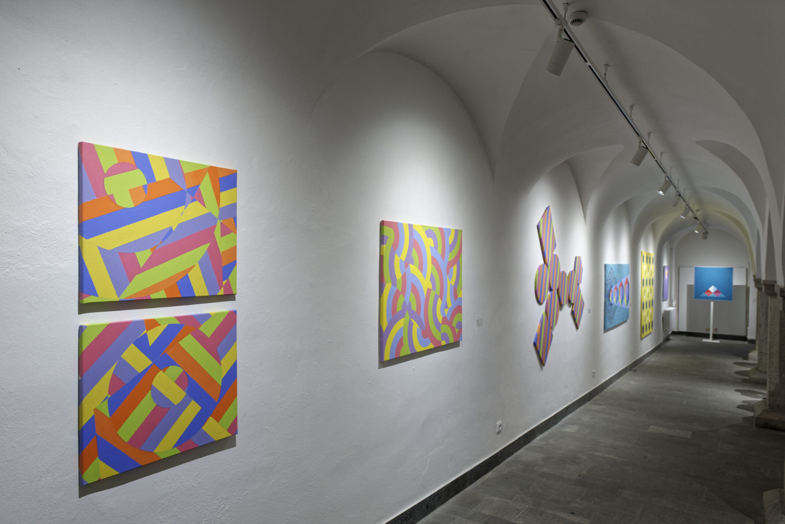 Výstavný projekt predstavuje tvorbu štyroch významných predstaviteľov geometrickej maľby na Slovensku, ktorí počas dlhoročnej pedagogickej praxe vychovali niekoľko generácií umelcov. Jednotlivé autorské prístupy sa líšia inšpiráciou aj formálnym spracovaním, ostávajú však konzistentné vo význame vývoja geometrického umenia. Výstava je uvedená v rámci dramaturgického cyklu Téma. Projekt z verejných zdrojov podporil Fond na podporu umenia.